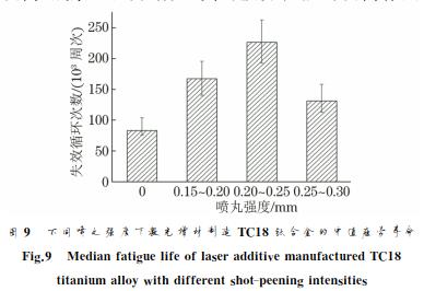 可見,過大或過小的噴丸強(qiáng)度均不利于激光增材制造TC18鈦合金疲損壽命的提高。